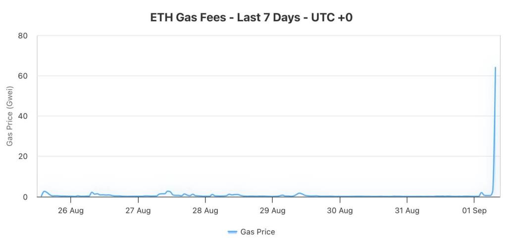 According to Milk Road data, Ethereum gas fees, which hovered near zero before the token’s debut, surged to more than 60 gwei as traders competed to settle WLFI transactions on the chain.